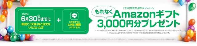 天神クリスマスキャンペーン2025:資料請求後のLINE登録&無料体験後の新規注文でAmazonギフト券合計3,000円分プレゼント(2025年12月)